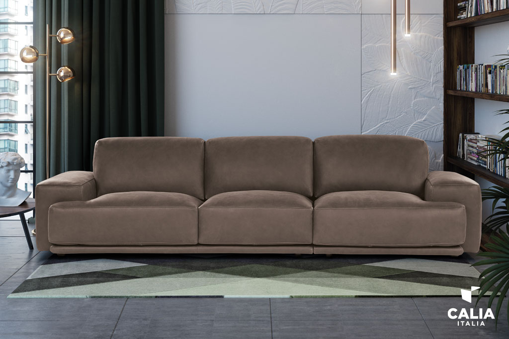 Per i living ampi, l’ideale è un divano imponente come il Foster di Calia Italia, dall’aspetto morbido e dalle dimensioni generose, caratterizzato da un’ampia seduta e un bracciolo importante.