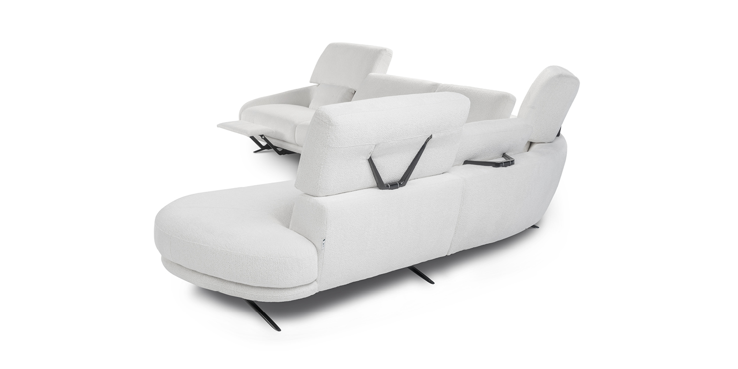 Imponente, morbido e dai contorni sinuosi. Regal_e, assaporando il presente ci riporta, per affinità formali, negli anni 70, proiettandoci nel futuro. È ben inserito in living di ampio respiro grazie alla sua versatile componibilità per un comfort di alto livello, assicurato dalla presenza di meccanismi elettrici e manuali. Esprime il massimo delle sue potenzialità con le spalliere sollevate che gli donano un autorevole aspetto regale. Disponibile in pelle, tessuto o microfibra, è impreziosito da piedi esili in metallo, disponibili in diverse finiture. È caratterizzato da spalliere sollevabili manualmente grazie ad un meccanismo di facile utilizzo e dotato inoltre di poggiapiedi, retrattili elettricamente, dal design “ultra-slim”. Entrambi i meccanismi azionati garantiscono il massimo del comfort. L’altezza totale del modello con spalliera sollevata è pari a 103 cm.